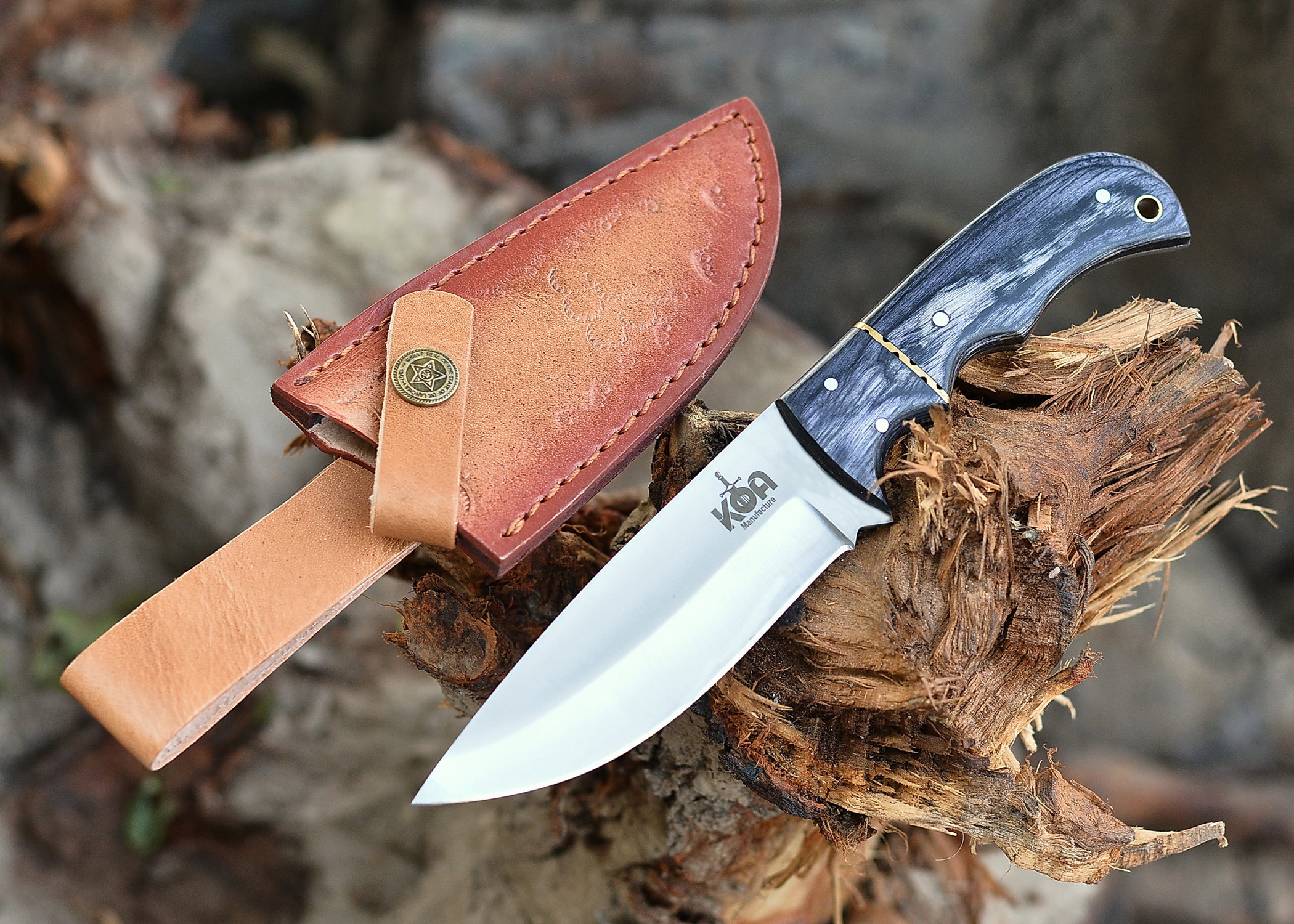 Included with the knife is a handcrafted genuine leather sheath with belt loop and snap closure. The sheath protects the blade while allowing safe and convenient carry during outdoor adventures. Whether worn on your belt or stored in your gear bag, it keeps your knife secure and ready for action.