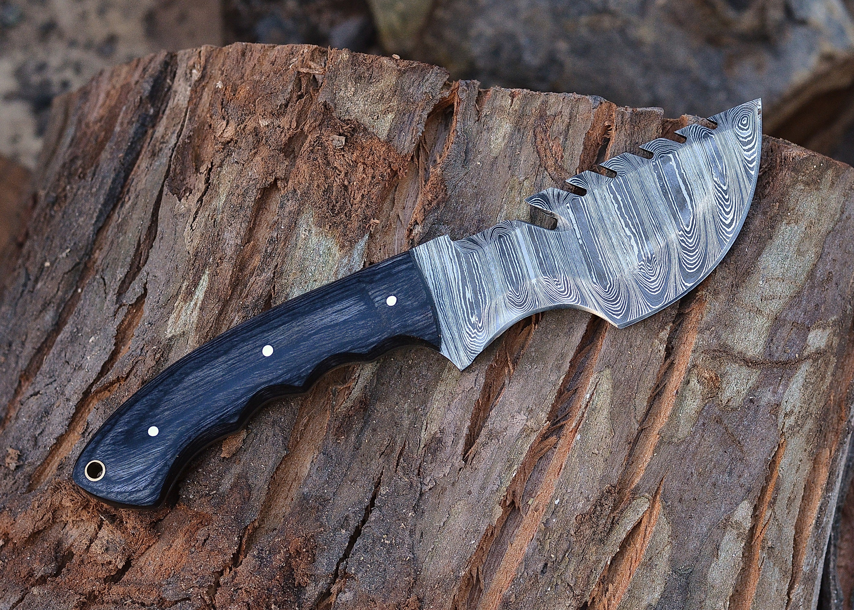 If you’re searching for a Damascus steel serrated fixed blade knife, dark wood handle hunting knife, patterned outdoor survival blade, or tactical Damascus bushcraft knife, the Shadow Fang Damascus delivers strength, control, and bold outdoor character.